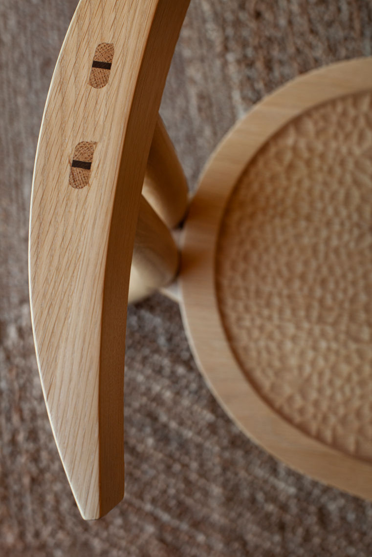 L’assise creusée à la gouge rappelle l’artisanat d’art des meubles anciens. Les détails d'assemblage du bois, les courbes du dossier épais apportent à Kaï une forte singularité.